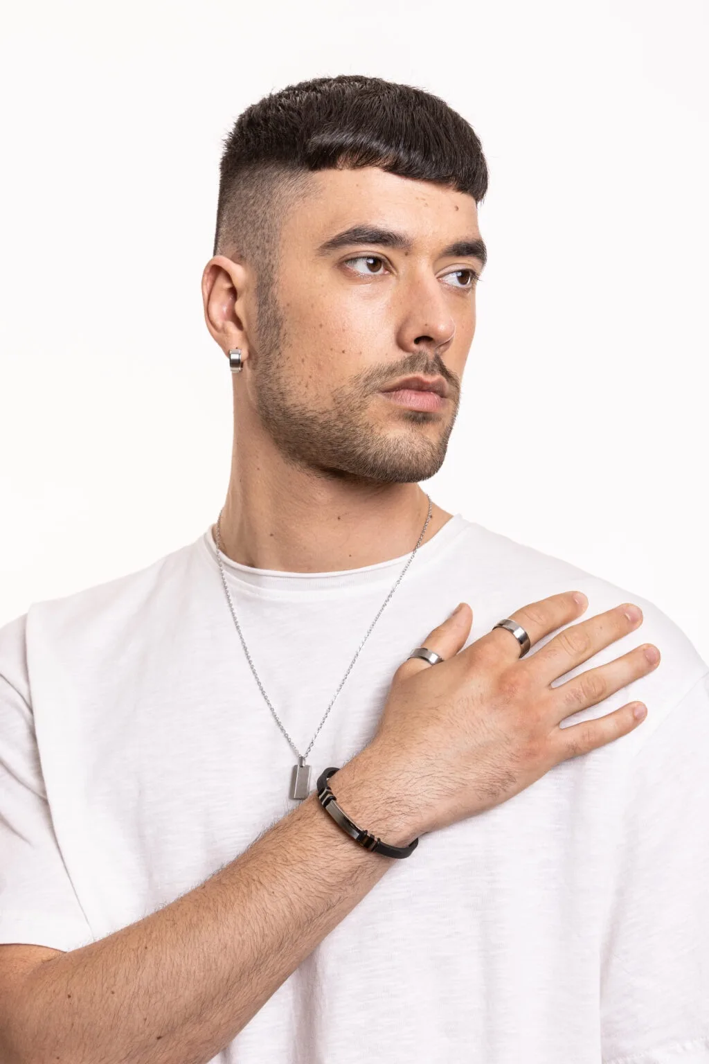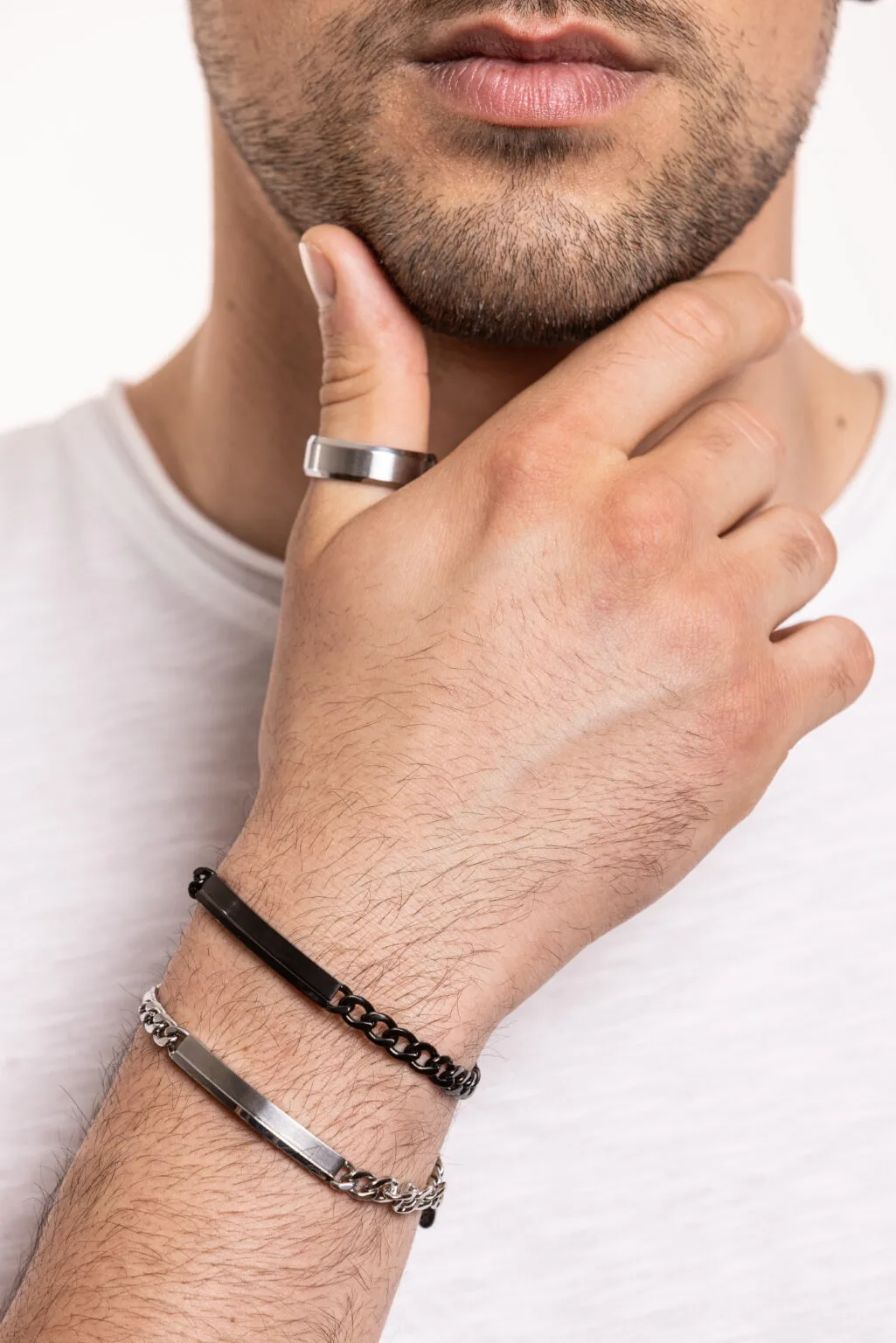 Овoj прстен е од колекцијата Strong на Brand Gioielli од Сан Марино (Италија).Прстенот е изработен е од хипоелергенски,нерѓосувачки челик 316L,тестиран на никел со што се овозможува отпорност и трајност од менување боја и квалитет.Достапен во 6 големини;18-20-22-24-26-28