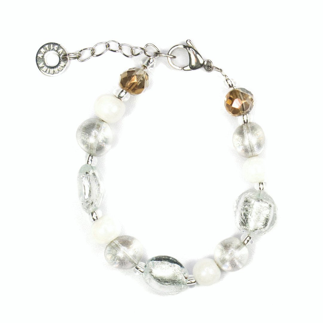 Дизајнот на накитот е доловен со игра на сини, бели и сребрени нијанси на бои и преку употреба на сребрени листови во поголемите мурано бисери, додека остатокот од мураното е со матиран, бисерен и транспарентен финиш.