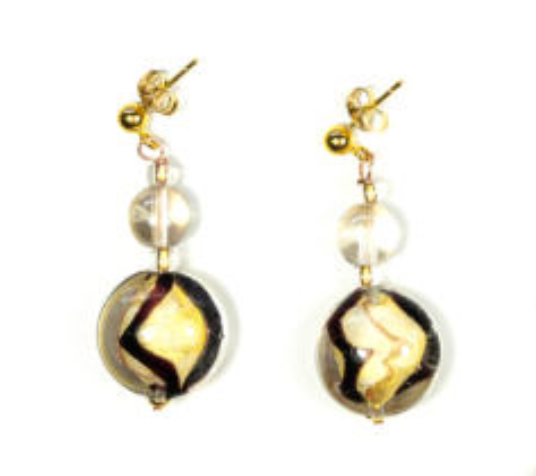 Квадратните облици на синџирот се спојуваат со главните мурано бисери, украсени со златни 24 каратни листови.