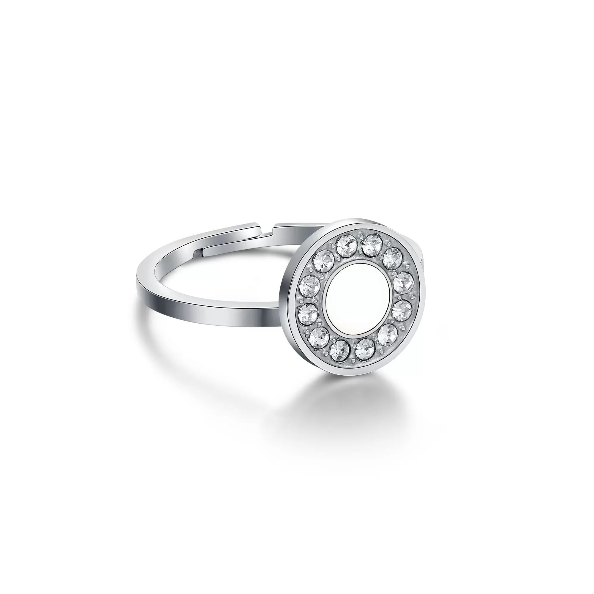 Прстенот е прилагодлив изработен е од хипоелергенски нерѓосувачки челик кој е траен и отпорен на менување боја и квалитет,истиот има бел емајл и бели кристали, обложен е со глазура којашто му дава дополнителна заштита и сјај.