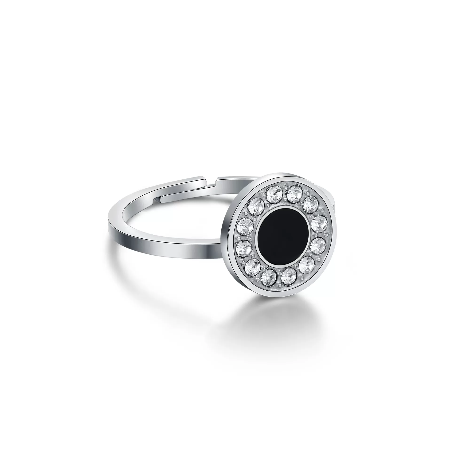 Прстенот е прилагодлив изработен е од хипоелергенски нерѓосувачки челик кој е траен и отпорен на менување боја и квалитет,истиот има црн емајл и бели кристали, обложен е со глазура којашто му дава дополнителна заштита и сјај.